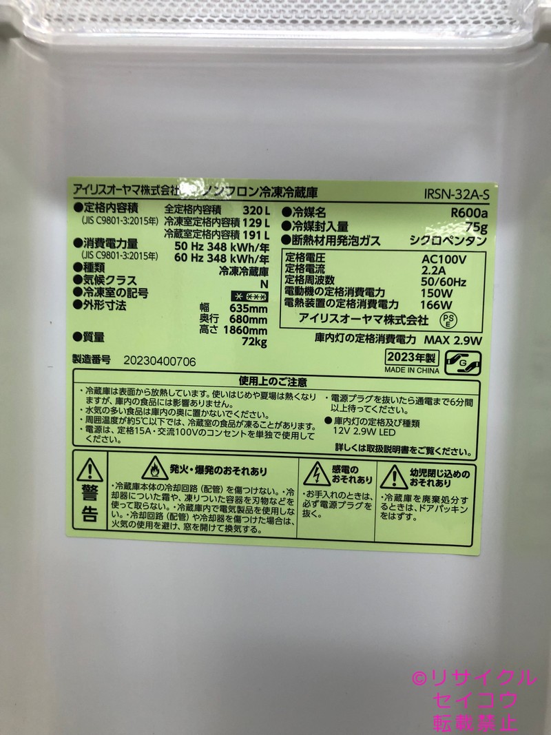【中古】アイリスオーヤマ IRISOHYAMA 冷蔵庫 320L 2023年式 IRSN-32A-S